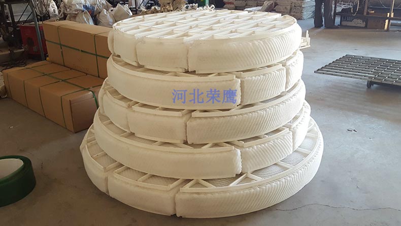 客戶在選擇絲網材料時,主要考慮操作系統中介質的腐蝕性和操作溫度,PP絲網除霧器能耐多種介質腐蝕,但機械強度小,操作溫度較低,榮鷹公司為提高絲網的操作性能和除霧效果,可與金屬絲混編,組成組合絲網,這種組合絲網具有很高的分離效率。